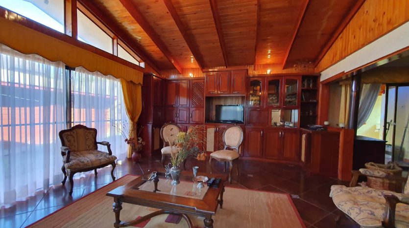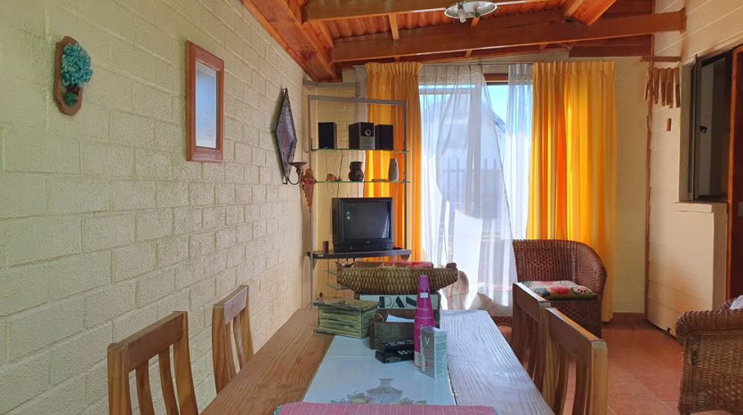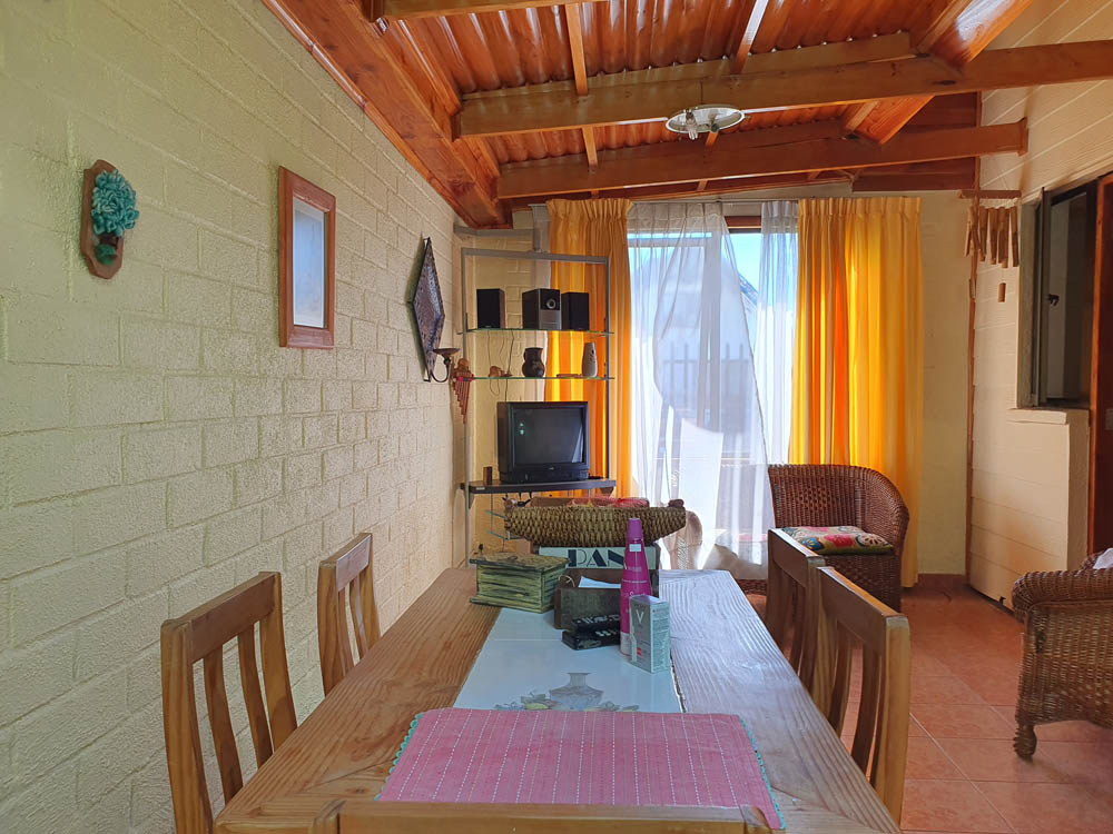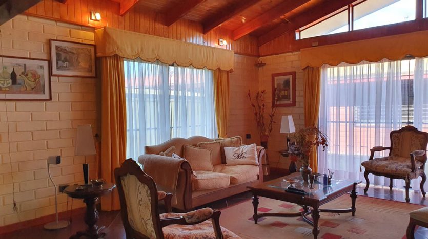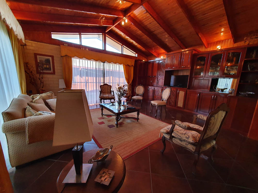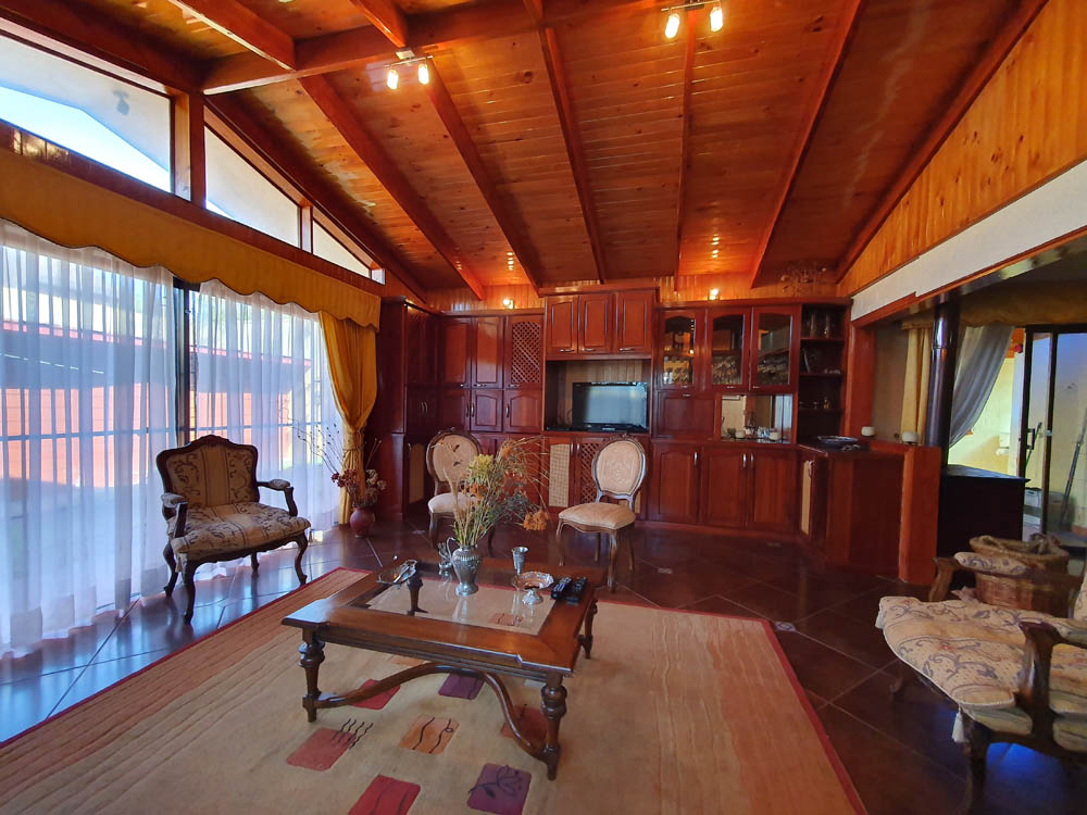 — Living comedor ampliado, con vigas a la vista, cerámica en pisos y gran modular en rauli