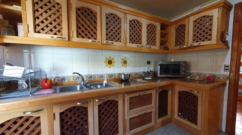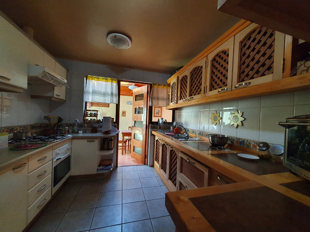 — Cocina con campana extracción, encimera, horno gas y hermosos muebles de pino oregon empotrados
