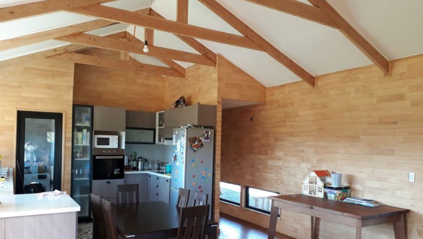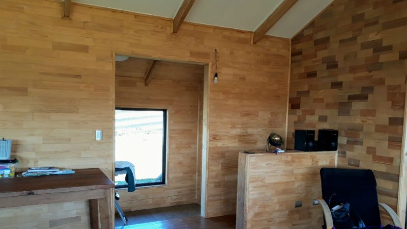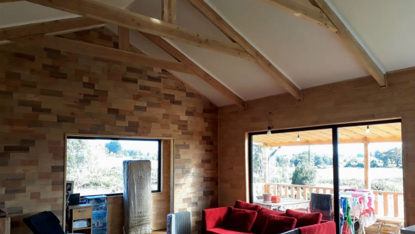 La construcción total es de pino, con paneles SIP, ventanas termopanel. Las ventanas del frontis de la casa, se ubican a nivel bajo, para mantener temperatura. Casa se entregara con piso vitrificado. Calefacción a pellet, e ingreso por medio de una rampa a Condominio urbanizado y con ingreso a través de clave. La parcela cuenta con cierre perimetral y portón de acceso.