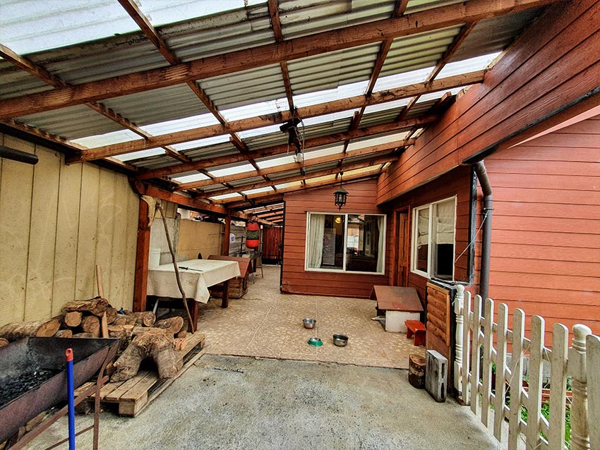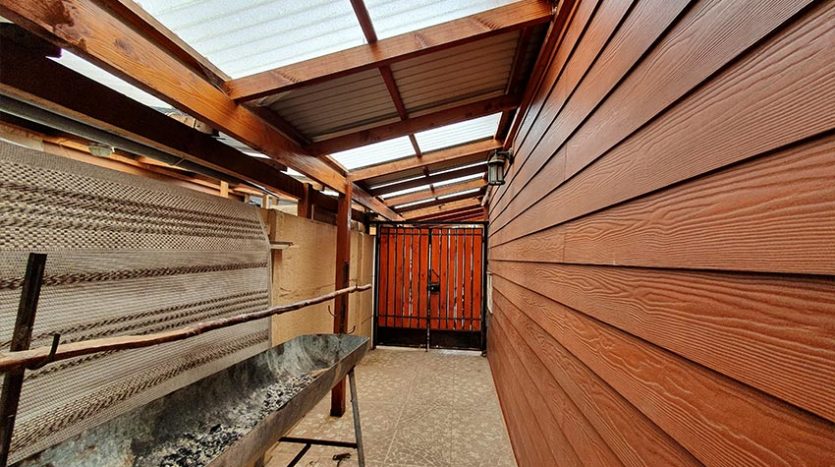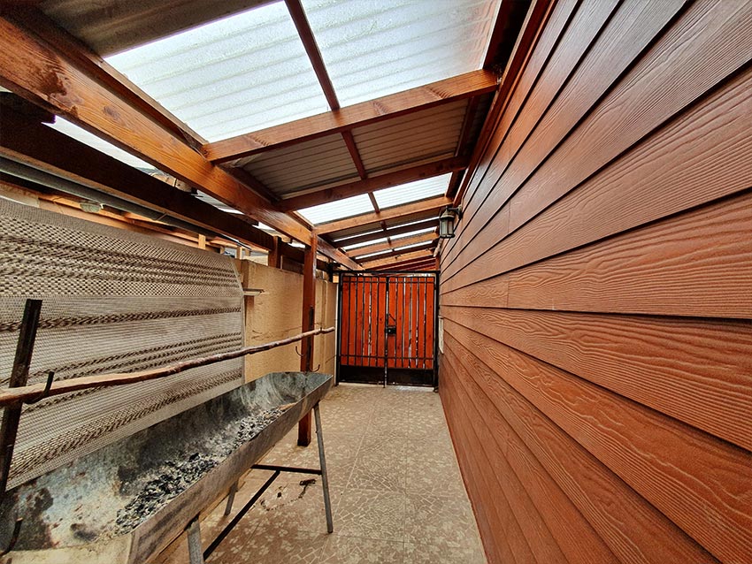 Cobertizo, pavimentos exteriores, reja de fierro.