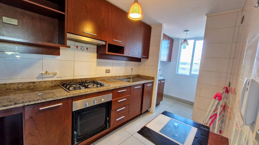 - Cocina amoblada, campana, encimera, horno eléctrico